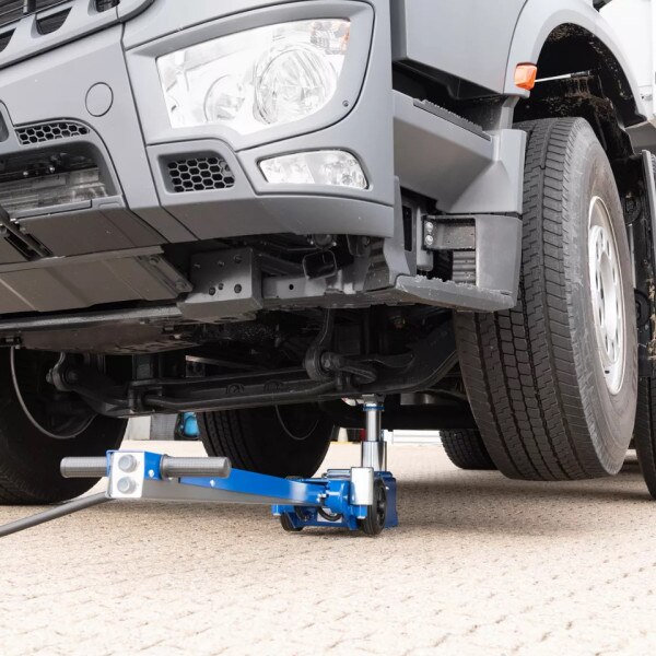 VERSATILE 2-STAGE AIR HYDRAULIC JACK WITH LOW MINIMUM HEIGHT, IDEAL FOR BUSES AND TRUCKS