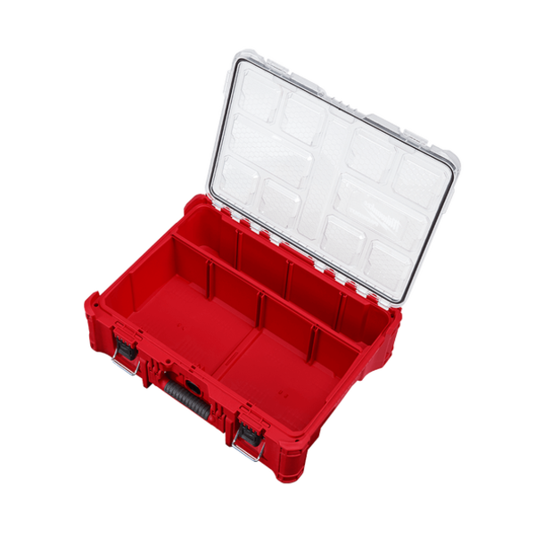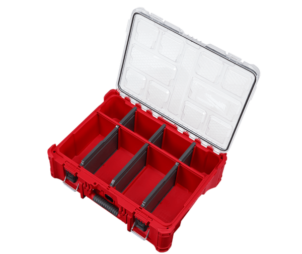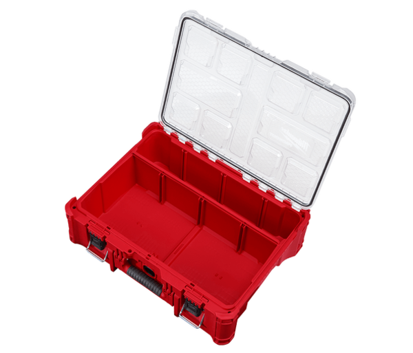 Our PACKOUT™ Deep Organiser provides a heavy duty storage and transport solution for those users with large fittings and accessories. The transparent lid of the Deep Organiser allows users to easily identify the right accessories for the job, while its no-travel seals prevent contents from moving around inside. With an IP65 rated seal, tools, accessories and fittings will be protected from weather and jobsite debris, while each Deep Organiser comes with quick-adjust dividers that allow the user to customise their unit exactly as needed. Part of the PACKOUT™ platform, the Deep Organiser attaches securely to any other PACKOUT™ product for ultimate transport and organisation on the jobsite.